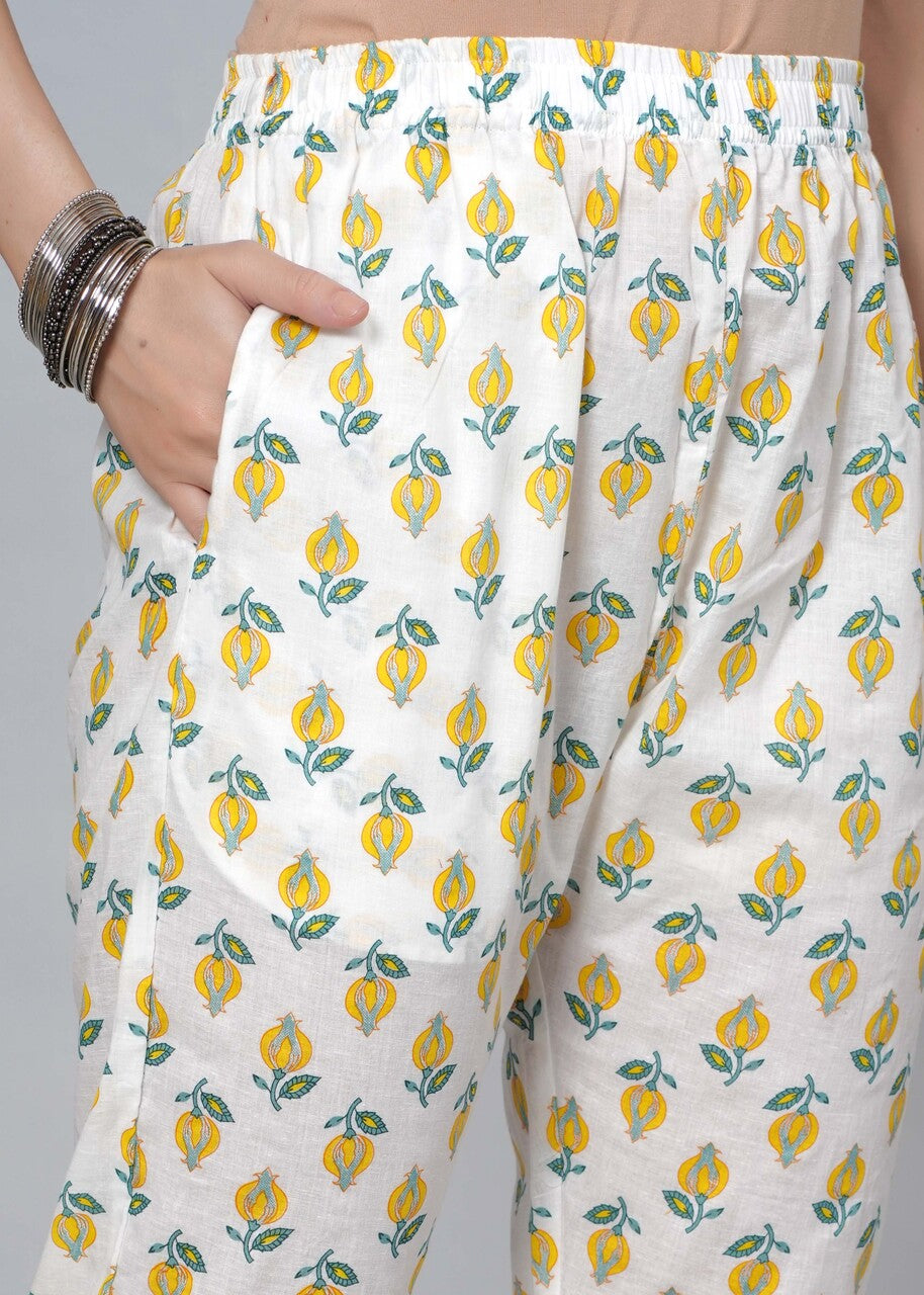 Mitrika Floral Yellow Print Straight Kurta Pant Set