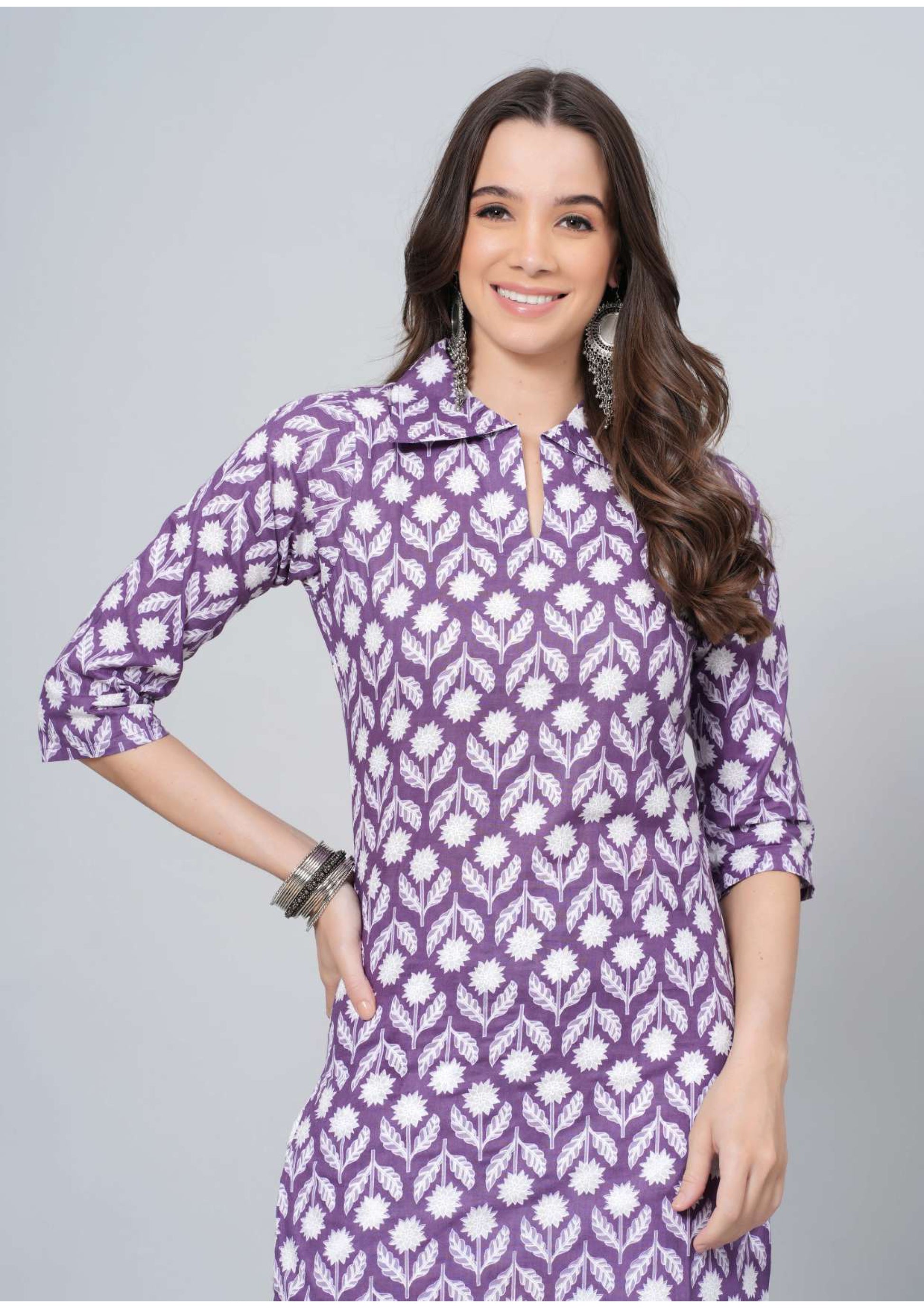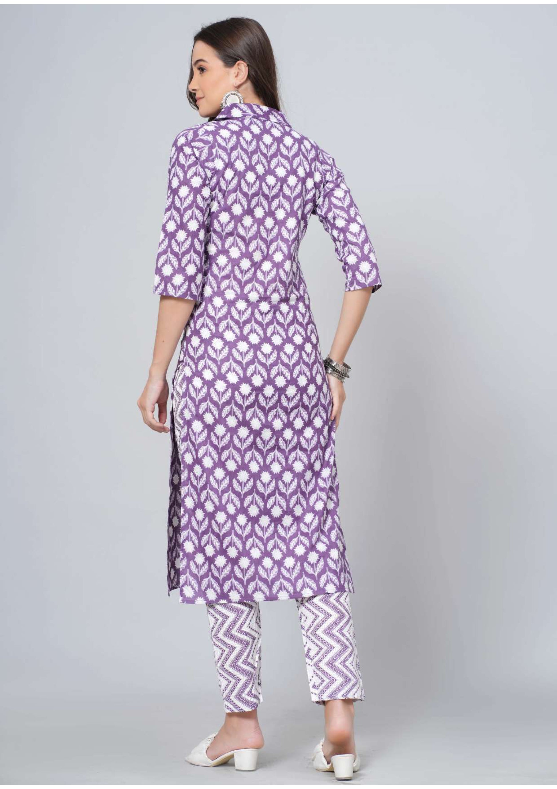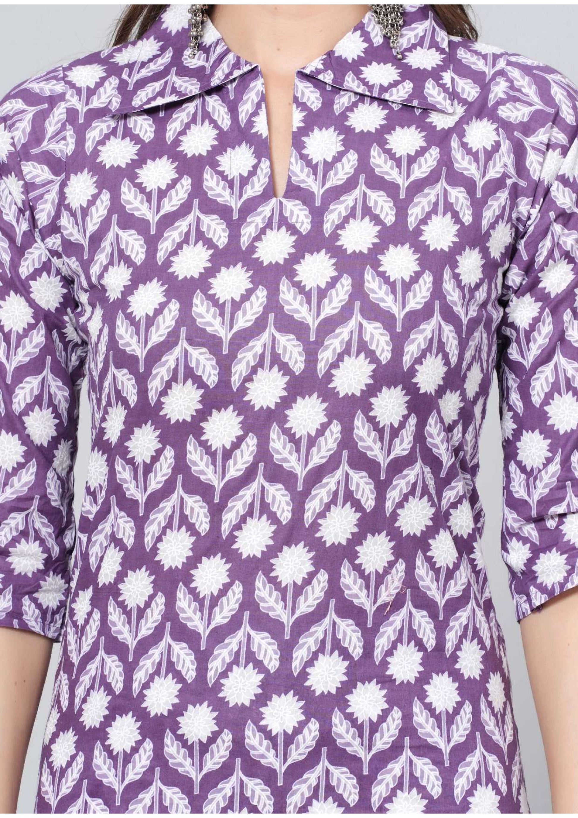 Mitrika Purple Floral Printed Cotton Kurta Set