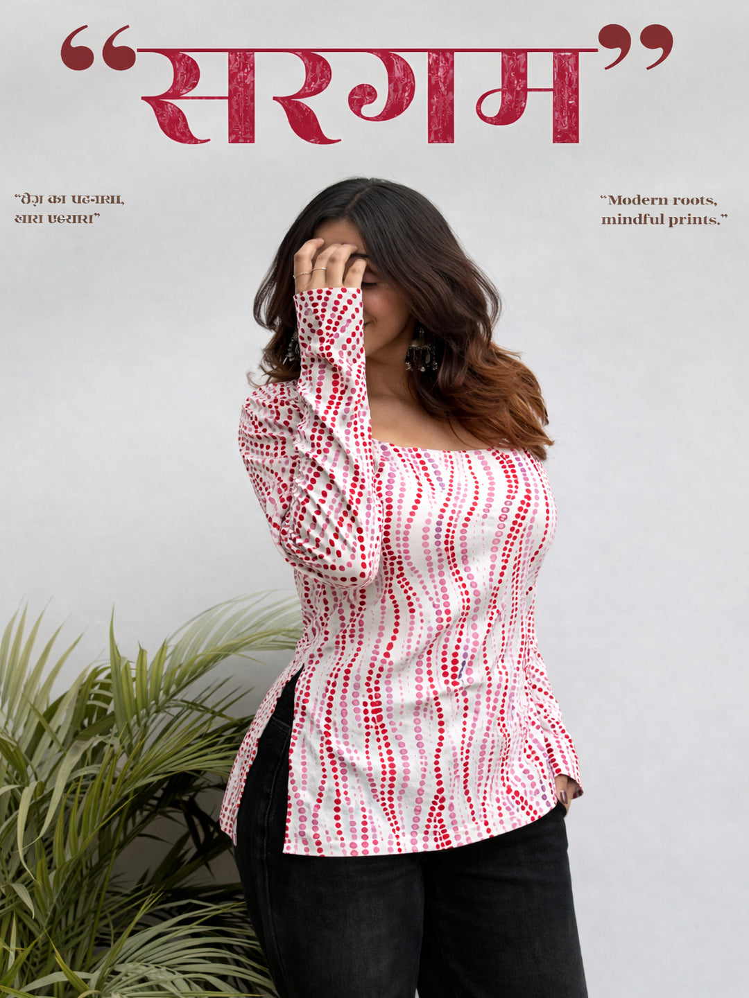 Add a fresh and stylish touch to your wardrobe with this elegant pink abstract printed top. Designed with a flattering square neckline and statement flared sleeves,The soft, breathable cotton fabric ensures all-day comfort, making it perfect for casual outings or relaxed gatherings. Pair it with jeans or ethnic bottoms for a versatile, chic look.